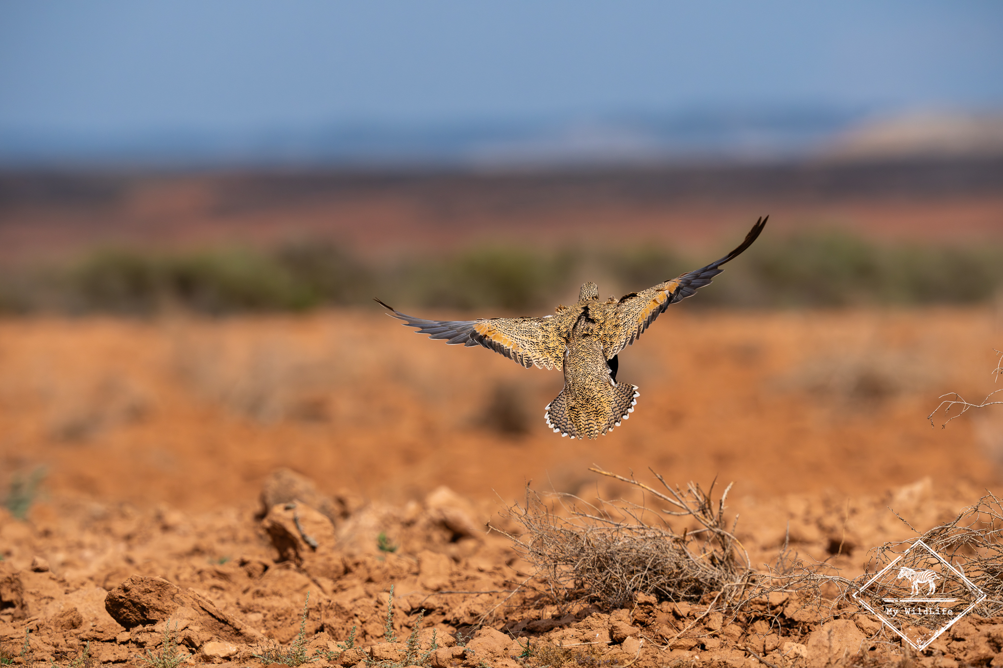Pour photographier les gangas depuis ces affûts photo, je recommande une focale variant de 200 à 800 mm. 800 mm permettra de faire des portraits serrés des gangas sur la rive opposée du plan d’eau. A 200 mm et 300 mm, on pourra prendre les oiseaux en vol.