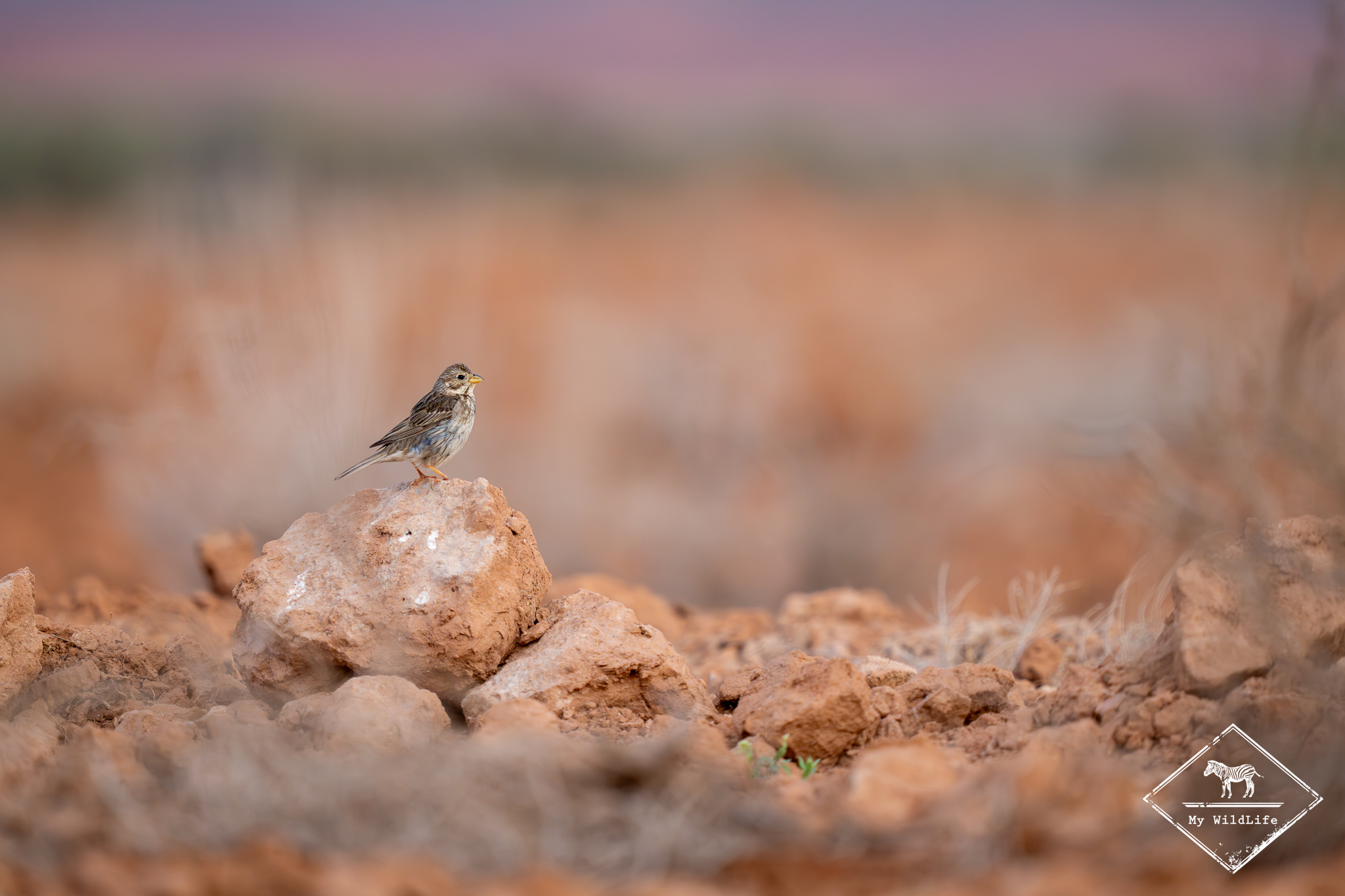 Le bruant proyer est le premier des passereaux à venir face à l’affût pour boire à la drinkstation puis c’est au tour de l’alouette calandre facilement reconnaissable avec sa tâche noire sous le cou. Avec l’alouette des champs, le cochevis de Thékla, le cochevis huppé et l’alouette calandrelle, les passereaux alternent leur venue sur le plan d’eau. J’ai l’impression d’être en Afrique. Les mammifères ont exactement le même type de comportement.